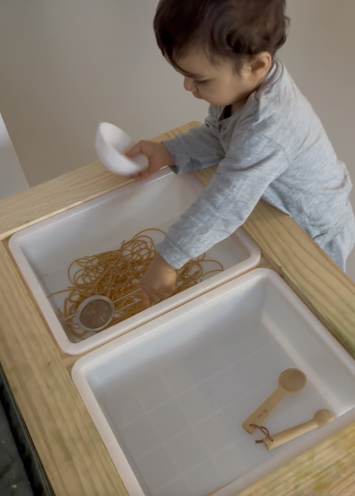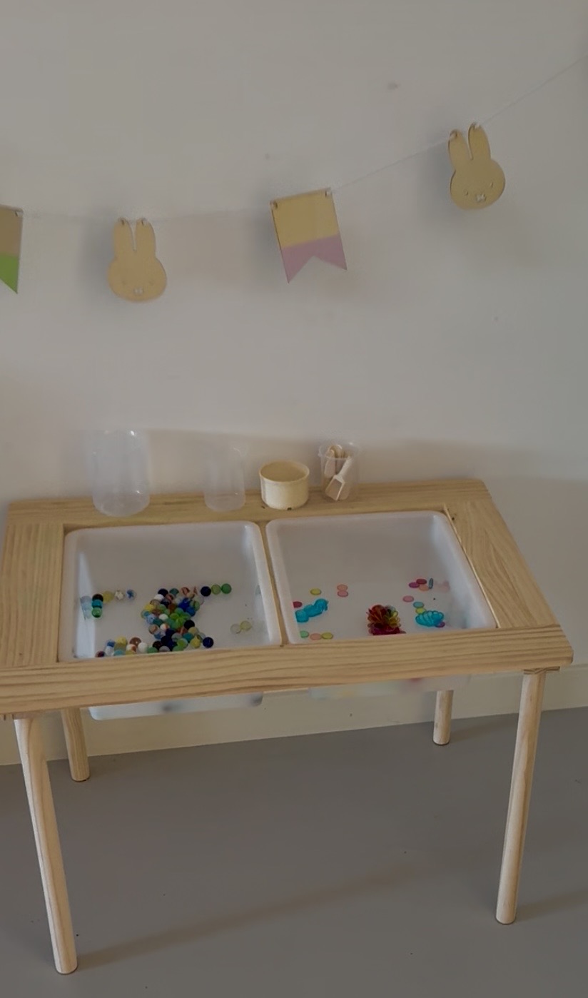 Er is geen 'goed' of 'fout' aan een speeltafel. Spaghetti kan een nest worden, rijst verandert in sneeuw en zand wordt een woestijn. Open-ended play stimuleert fantasie en zelfvertrouwen.