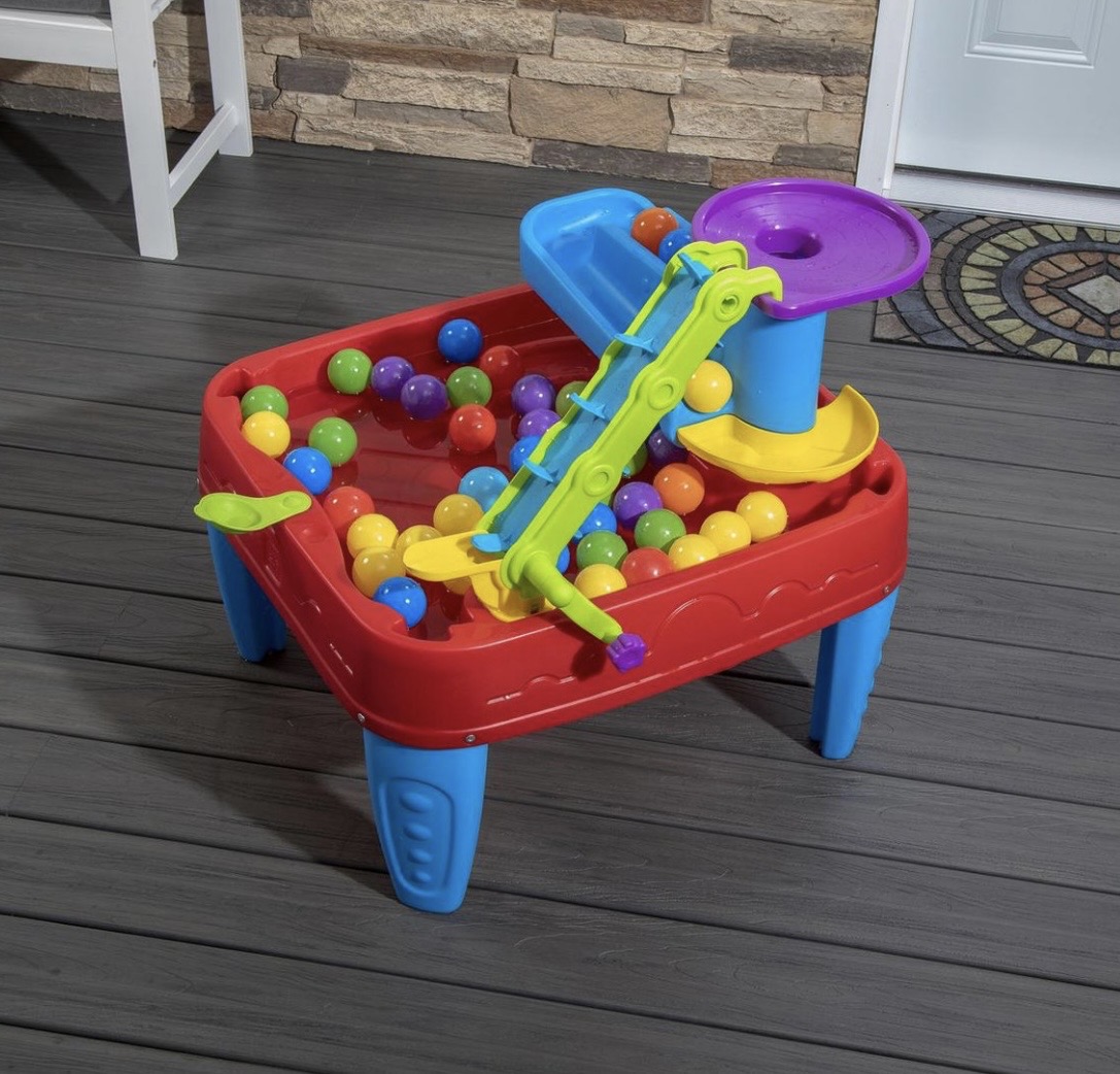 Dit is een watertafel die net even wat anders is door de ballen die worden meegeleverd. Voordeel is dat je 'm binnen en buiten kunt gebruiken.